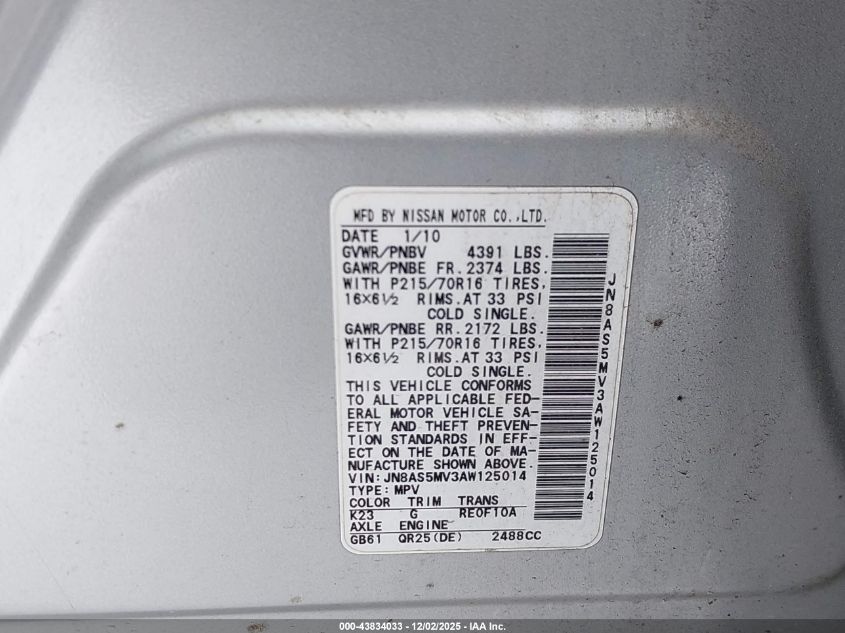 2010 NISSAN ROGUE S