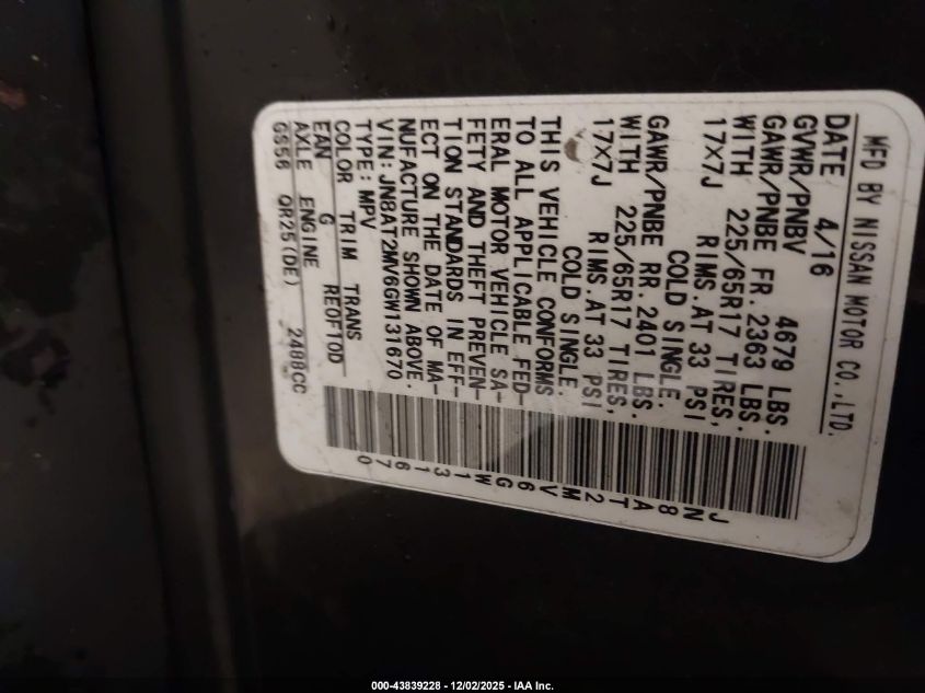 2016 NISSAN ROGUE 2016 року Бензин, 2.5, Полный привод, vin - JN8AT2MV6GW131670 из США