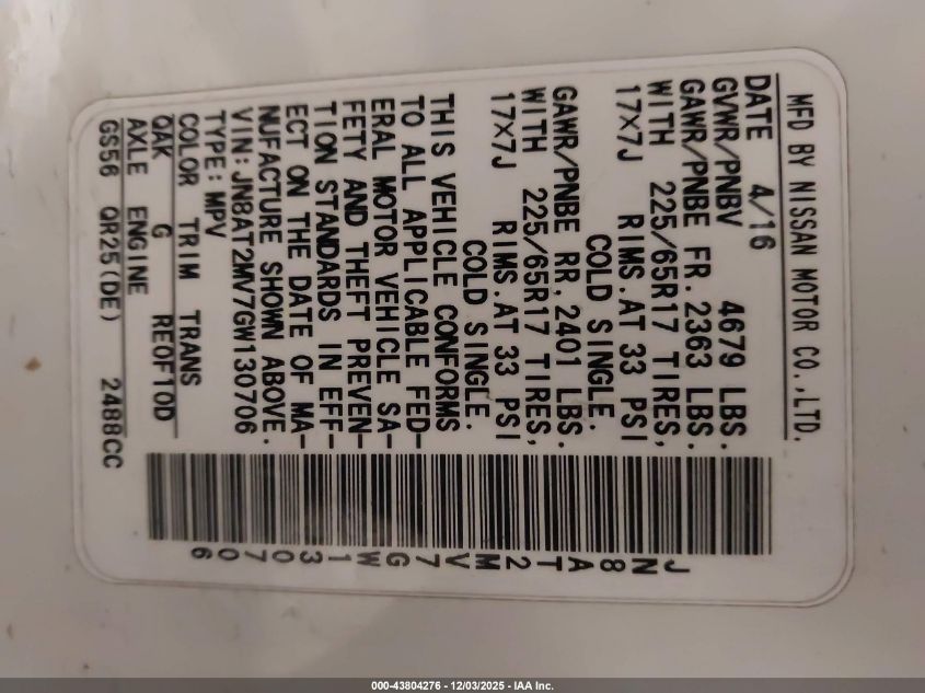 2016 NISSAN ROGUE 2016 року Бензин, 2.5, Полный привод, vin - JN8AT2MV7GW130706 из США
