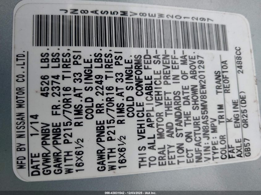 2014 NISSAN ROGUE 2014 року Бензин, 2.5, Полный привод, vin - JN8AS5MV8EW201297 из США