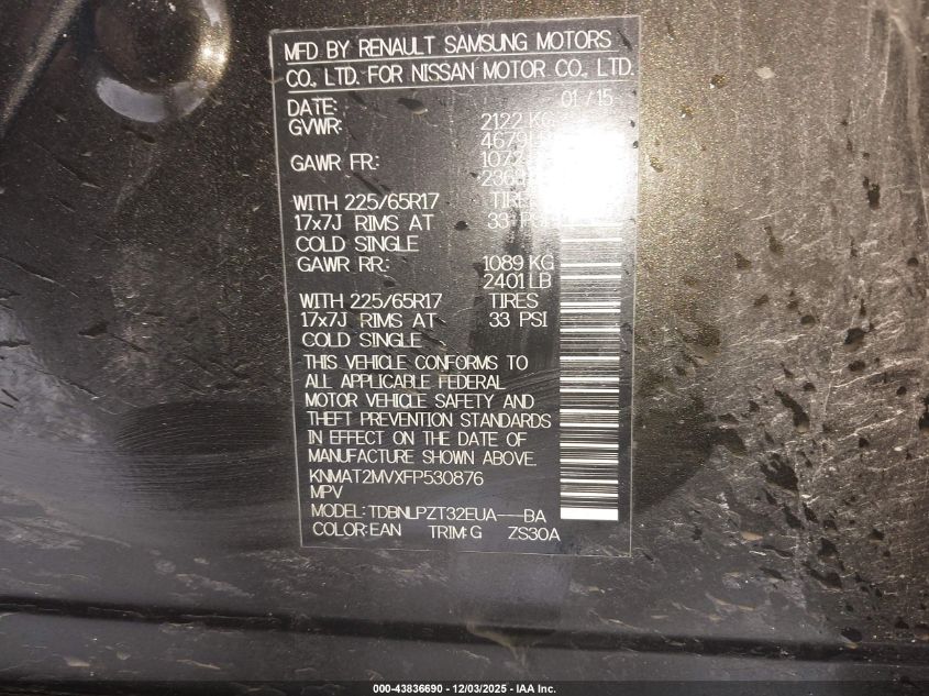 2015 NISSAN ROGUE 2015 року Бензин, 2.5, Полный привод, vin - KNMAT2MVXFP530876 из США