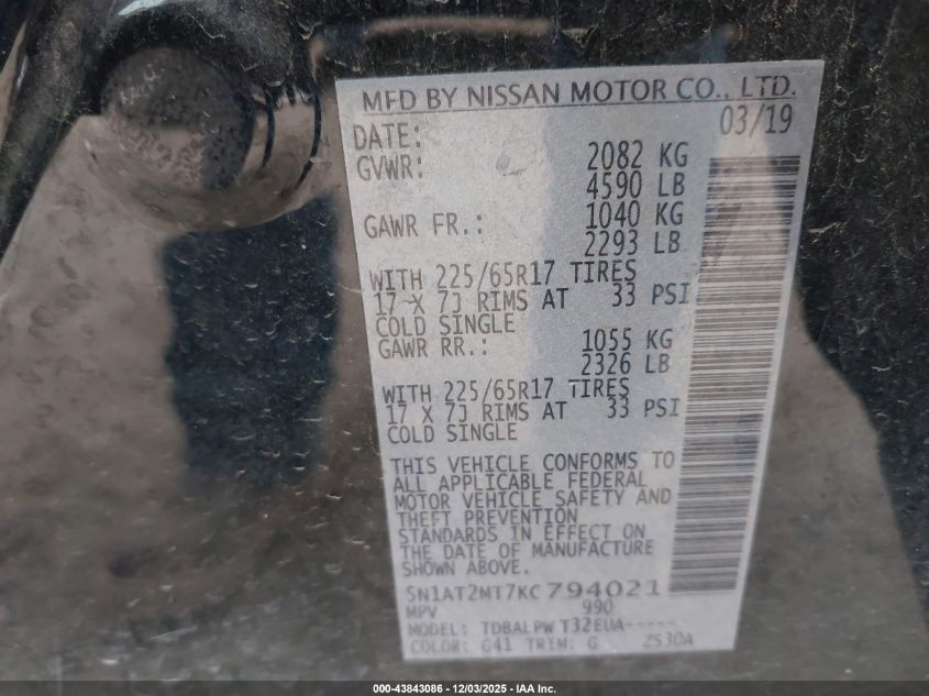 2019 NISSAN ROGUE 2019 року Бензин, 2.5, Передний привод, vin - 5N1AT2MT7KC794021 из США