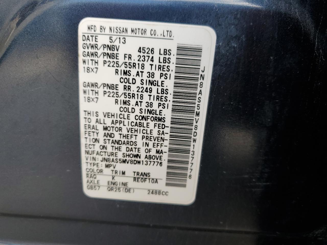 2013 NISSAN ROGUE 2013 року Бензин, 2.5, Полный привод, vin - JN8AS5MV8DW137776 из США