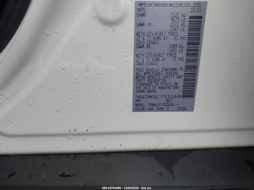 2014 NISSAN ROGUE 2014 року Бензин, 2.5, Полный привод, vin - 5N1AT2MV1EC755169 из США