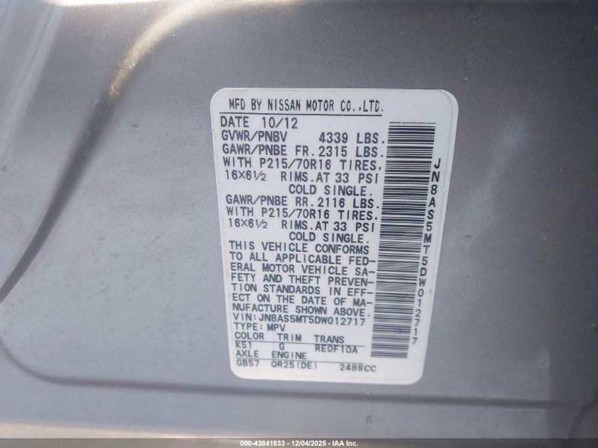 2013 NISSAN ROGUE 2013 року Бензин, 2.5, Передний привод, vin - JN8AS5MT5DW012717 из США