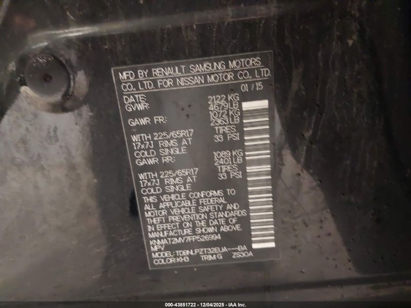 2015 NISSAN ROGUE 2015 року Бензин, 2.5, Полный привод, vin - KNMAT2MV7FP526994 из США