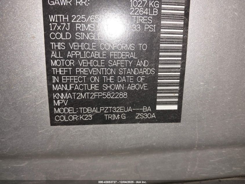 2015 NISSAN ROGUE 2015 року Бензин, 2.5, Передний привод, vin - KNMAT2MT2FP582288 из США