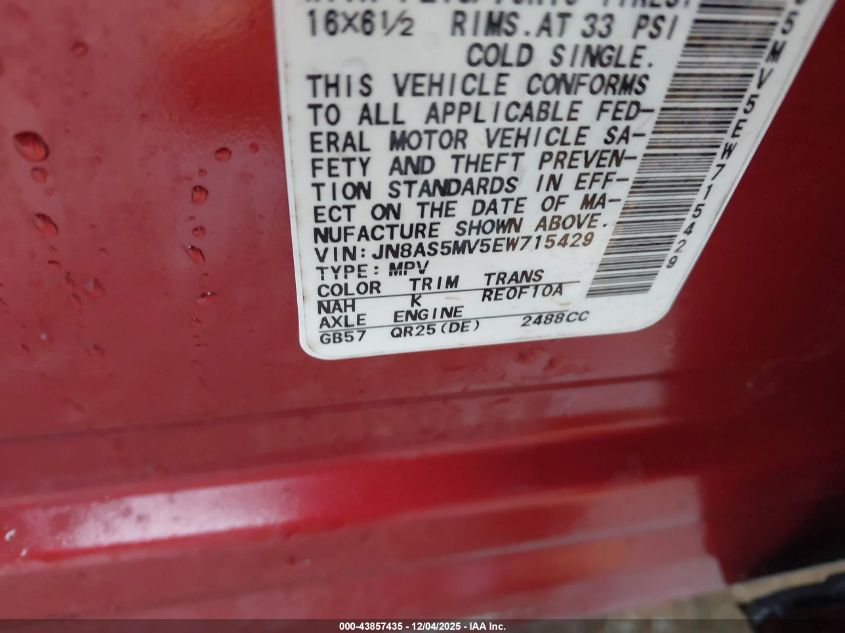 Цвет КрасныйЦилиндры 4Привод Полный приводVIN JN8AS5MV5EW715429Состояние Заводится и едет (проверено)Повреждения Передняя или задняя AutoRIA