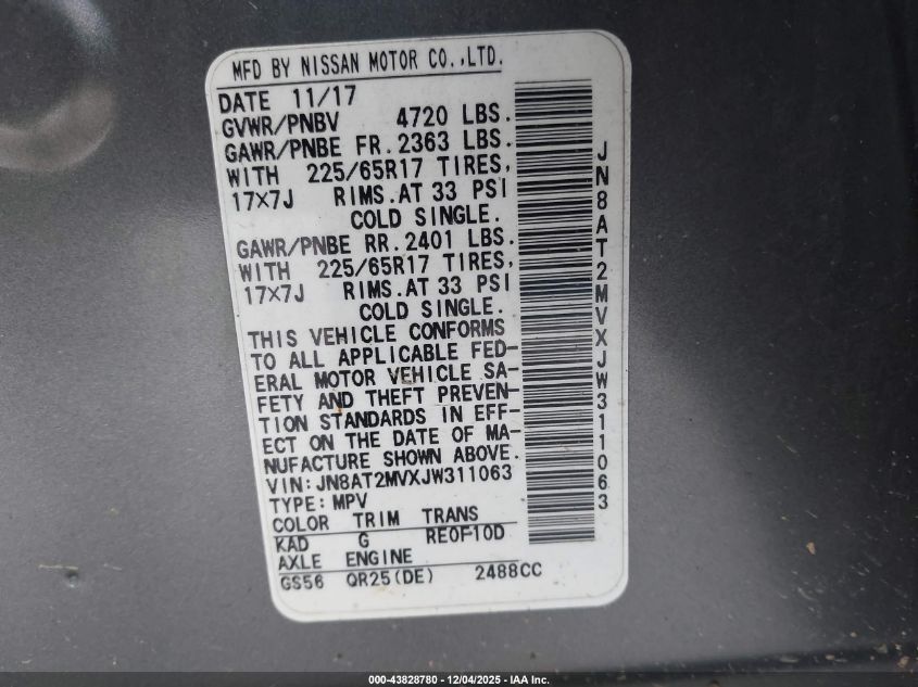 2018 NISSAN ROGUE 2018 року Бензин, 2.5, Полный привод, vin - JN8AT2MVXJW311063 из США