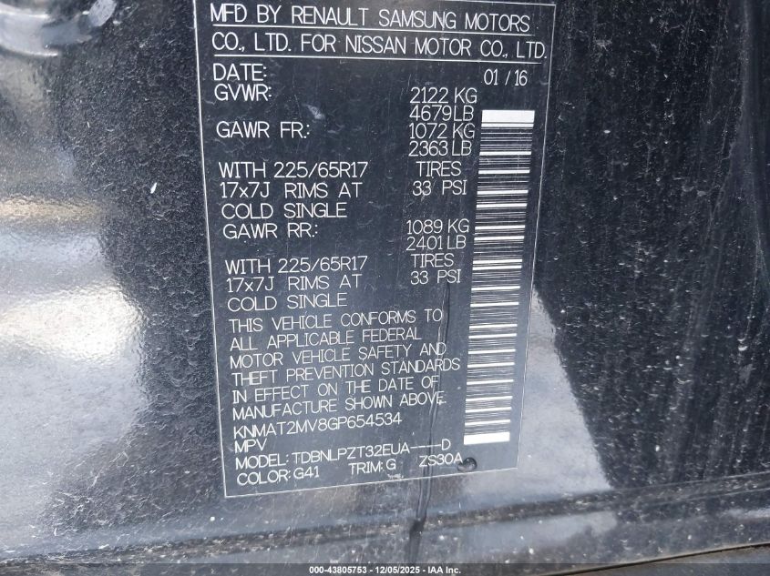 2016 NISSAN ROGUE S