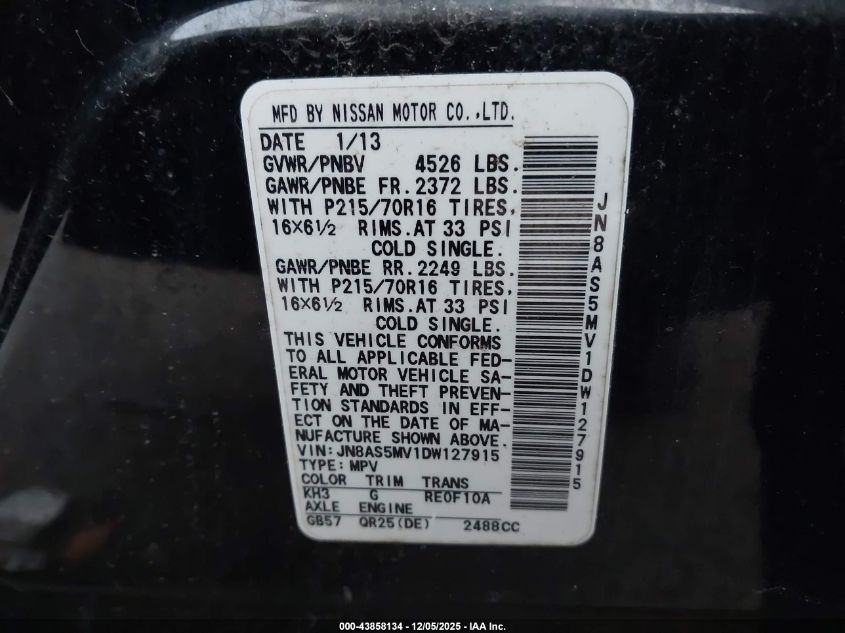 2013 NISSAN ROGUE 2013 року Бензин, 2.5, Полный привод, vin - JN8AS5MV1DW127915 из США
