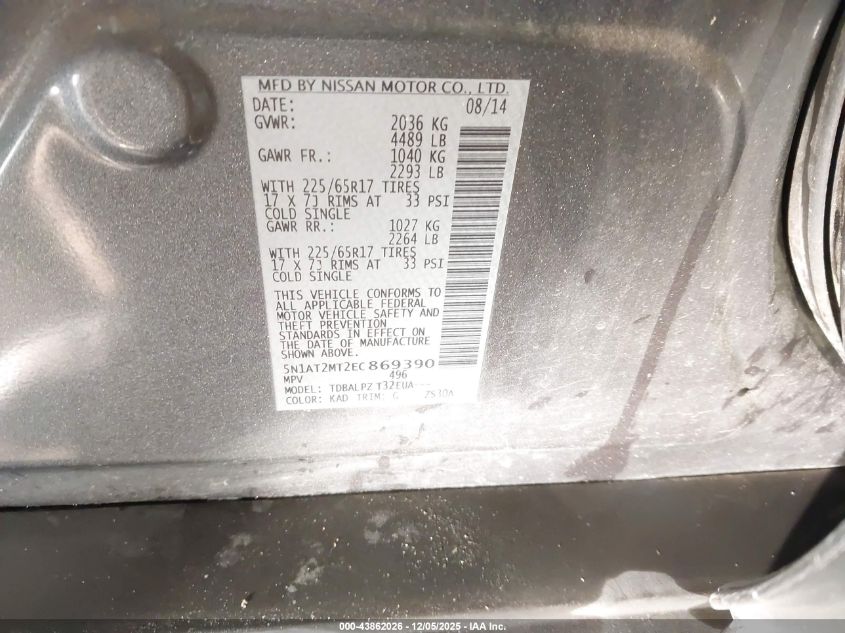 2014 NISSAN ROGUE 2014 року Бензин, 2.5, Передний привод, vin - 5N1AT2MT2EC869390 из США