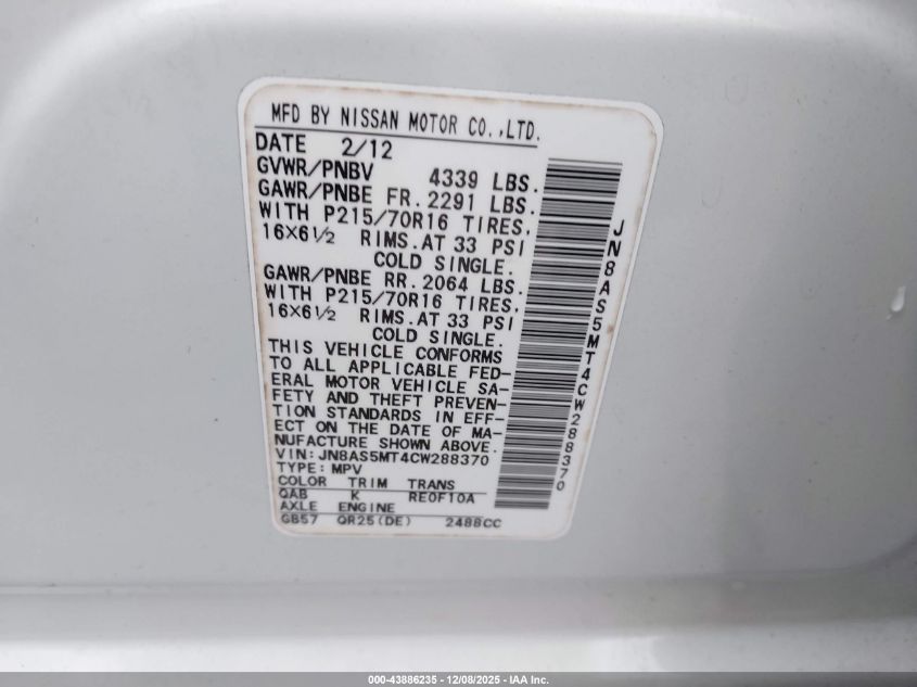 2012 NISSAN ROGUE S