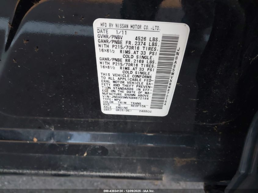 2011 NISSAN ROGUE 2011 року Бензин, 2.5, Полный привод, vin - JN8AS5MVXBW672184 из США
