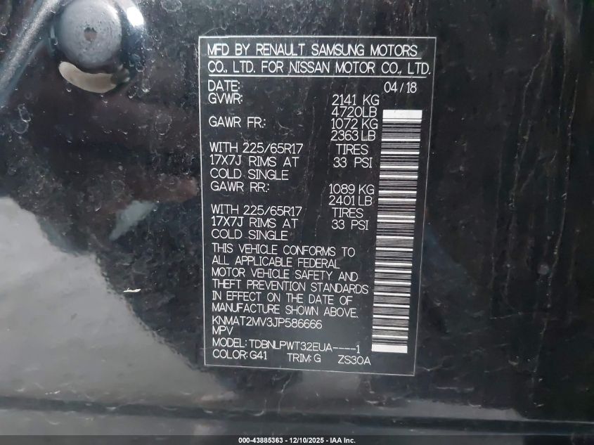 2018 NISSAN ROGUE 2018 року Бензин, 2.5, Полный привод, vin - KNMAT2MV3JP586666 из США