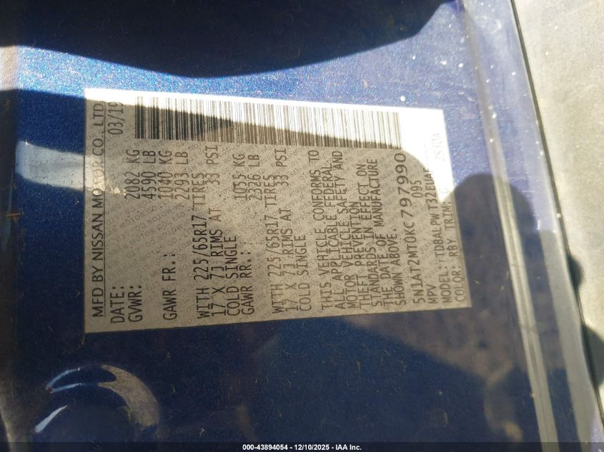 2019 NISSAN ROGUE 2019 року Бензин, 2.5, Передний привод, vin - 5N1AT2MT0KC797990 из США
