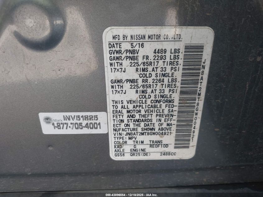 2016 NISSAN ROGUE 2016 року Бензин, 2.5, Передний привод, vin - JN8AT2MT8GW004921 из США