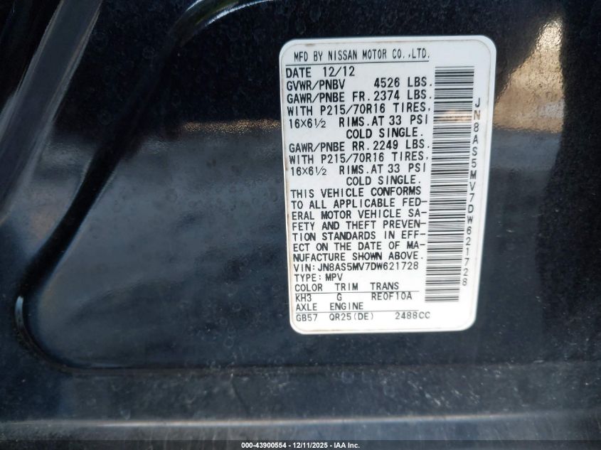 2013 NISSAN ROGUE 2013 року Бензин, 2.5, Полный привод, vin - JN8AS5MV7DW621728 из США