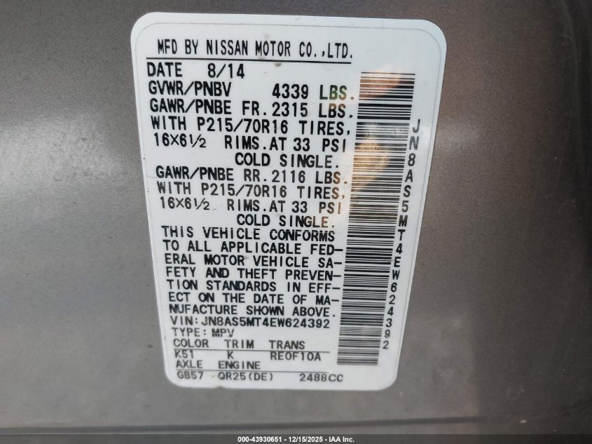 2014 NISSAN ROGUE S