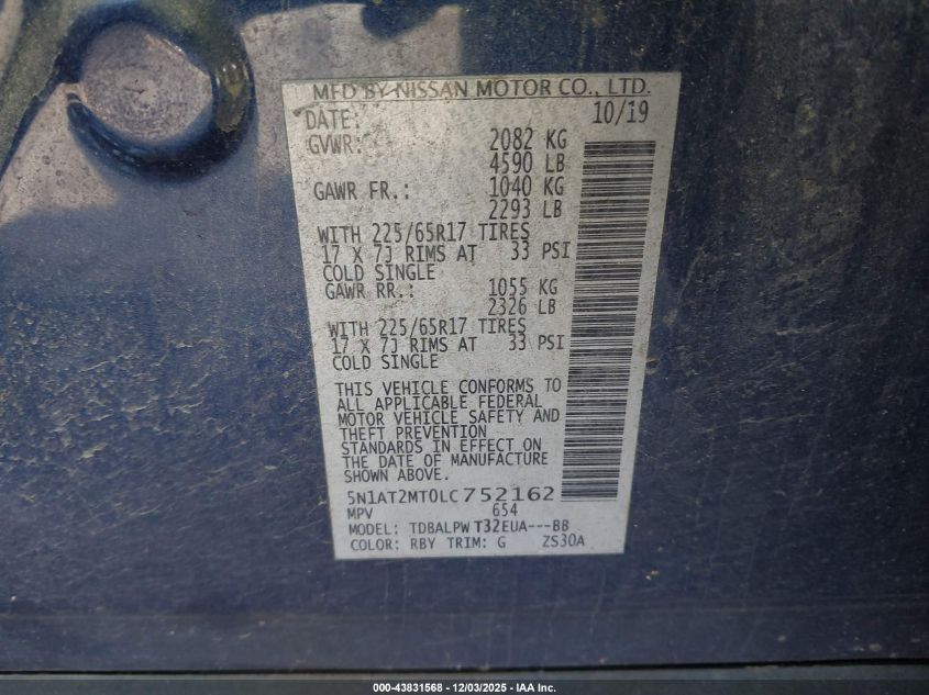 2020 NISSAN ROGUE 2020 року Бензин, 2.5, Передний привод, vin - 5N1AT2MT0LC752162 из США