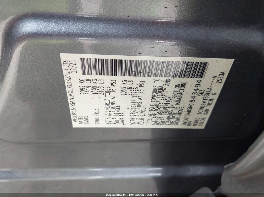 2021 NISSAN ROGUE 2021 року Бензин, 2.5, Полный привод, vin - 5N1AT3AB5MC843494 из США