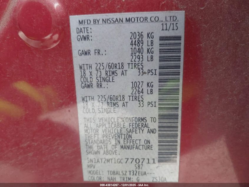 2016 NISSAN ROGUE S
