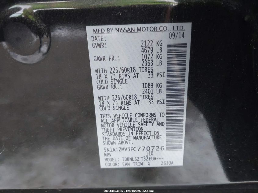 2015 NISSAN ROGUE 2015 року Бензин, 2.5, Полный привод, vin - 5N1AT2MV3FC770726 из США