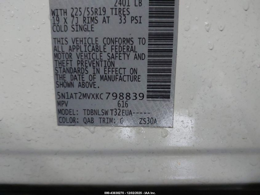 2019 NISSAN ROGUE 2019 року Бензин, 2.5, Полный привод, vin - 5N1AT2MVXKC798839 из США