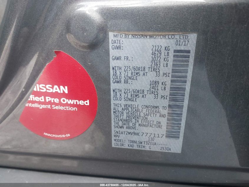 2017 NISSAN ROGUE 2017 року Бензин, 2.5, Полный привод, vin - 5N1AT2MV9HC777117 из США
