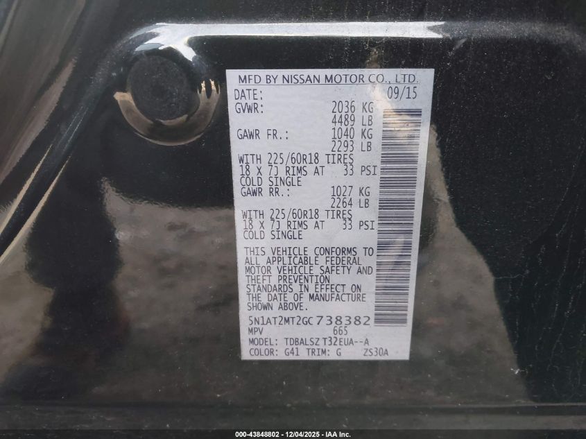 2016 NISSAN ROGUE 2016 року Бензин, 2.5, Передний привод, vin - 5N1AT2MT2GC738382 из США