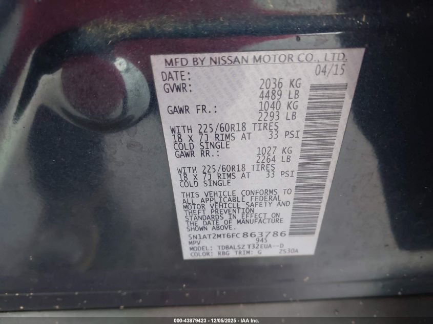 2015 NISSAN ROGUE 2015 року Бензин, 2.5, Передний привод, vin - 5N1AT2MT6FC863786 из США