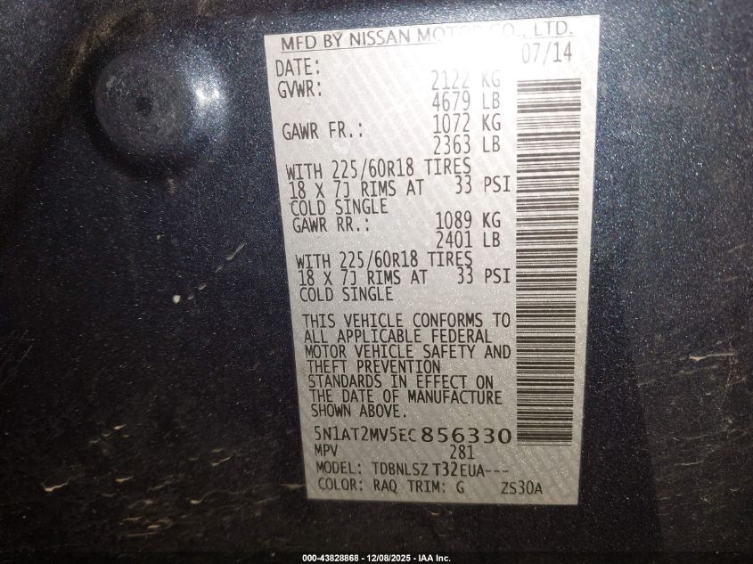 2014 NISSAN ROGUE 2014 року Бензин, 2.5, Полный привод, vin - 5N1AT2MV5EC856330 из США