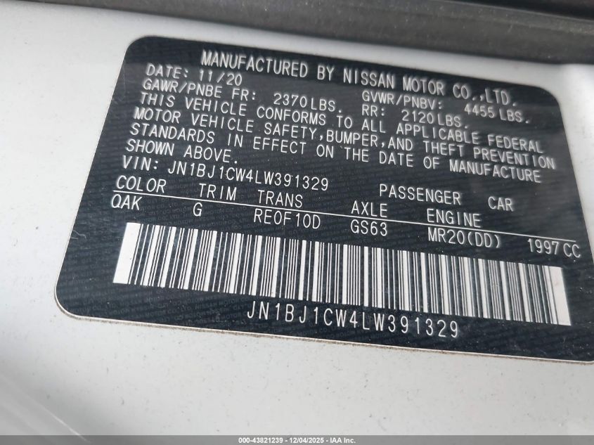 2020 NISSAN ROGUE SPORT 2020 року Бензин, 2.0, Полный привод, vin - JN1BJ1CW4LW391329 из США