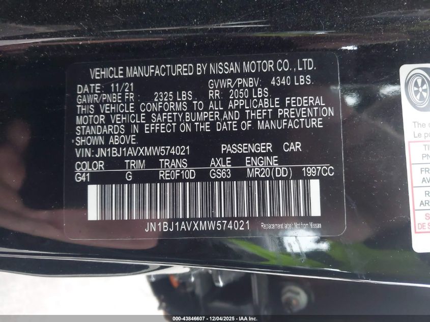 2021 NISSAN ROGUE SPORT 2021 року Бензин, 2.0, Передний привод, vin - JN1BJ1AVXMW574021 из США