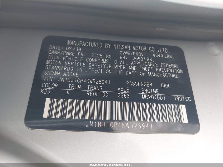 2019 NISSAN ROGUE SPORT 2019 року Бензин, 2.0, Передний привод, vin - JN1BJ1CP4KW528941 из США
