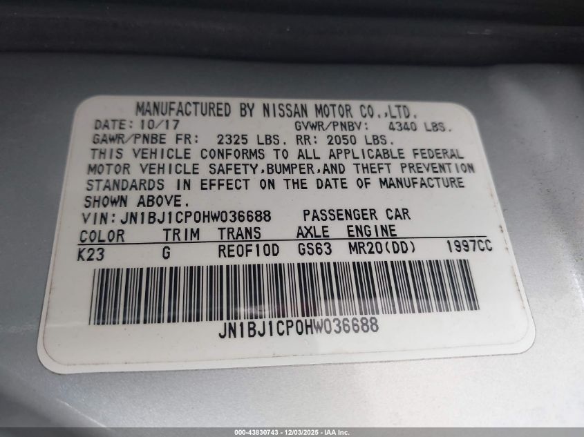 2017 NISSAN ROGUE SPORT S