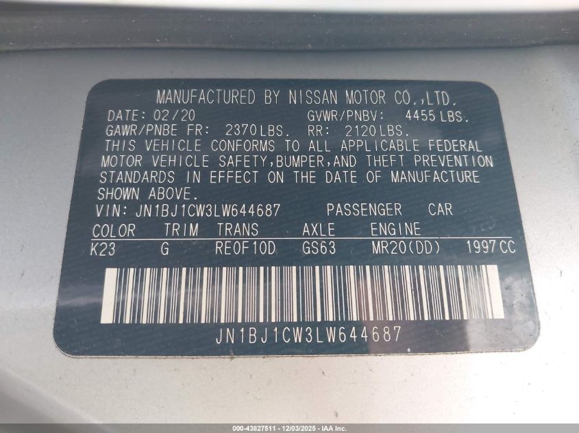 2020 NISSAN ROGUE SPORT 2020 року Бензин, 2.0, Полный привод, vin - JN1BJ1CW3LW644687 из США