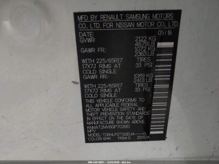 2016 NISSAN ROGUE 2016 року Бензин, 2.5, Полный привод, vin - KNMAT2MV6GP703911 из США