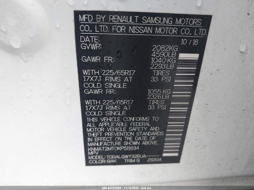 2019 NISSAN ROGUE 2019 року Бензин, 2.5, Передний привод, vin - KNMAT2MT0KP511634 из США
