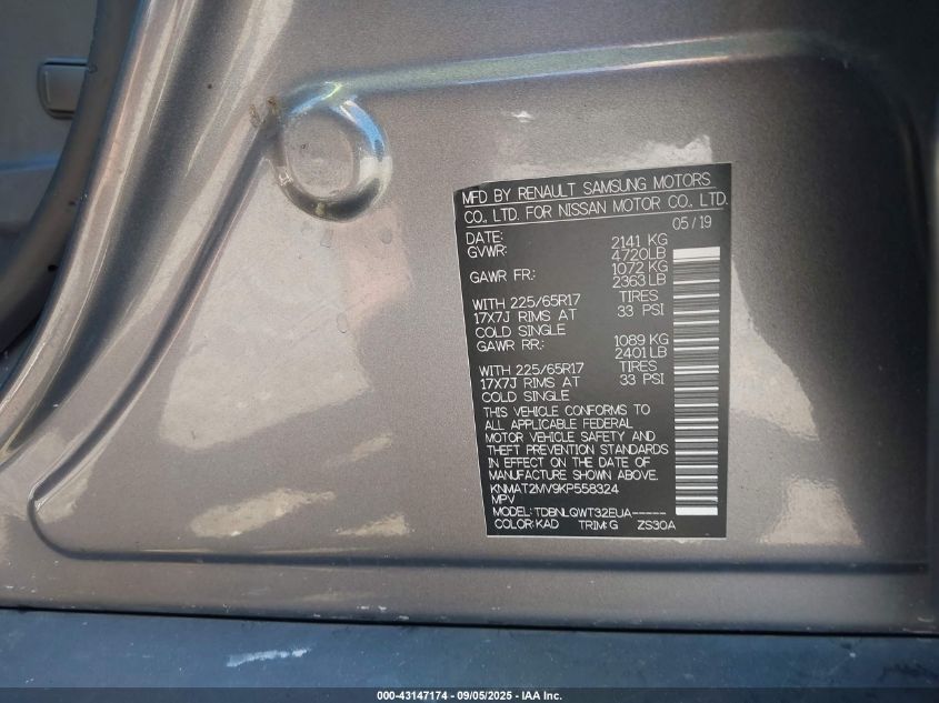 2019 NISSAN ROGUE 2019 року Бензин, 2.5, Полный привод, vin - KNMAT2MV9KP558324 из США