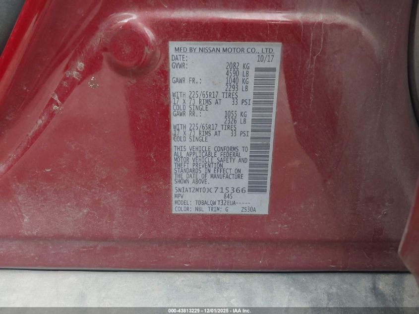 2018 NISSAN ROGUE 2018 року Бензин, 2.5, Передний привод, vin - 5N1AT2MT0JC715366 из США