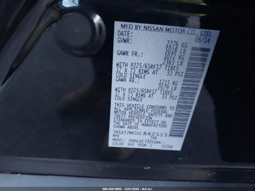 2014 NISSAN ROGUE 2014 року Бензин, 2.5, Полный привод, vin - 5N1AT2MK5EC842515 из США