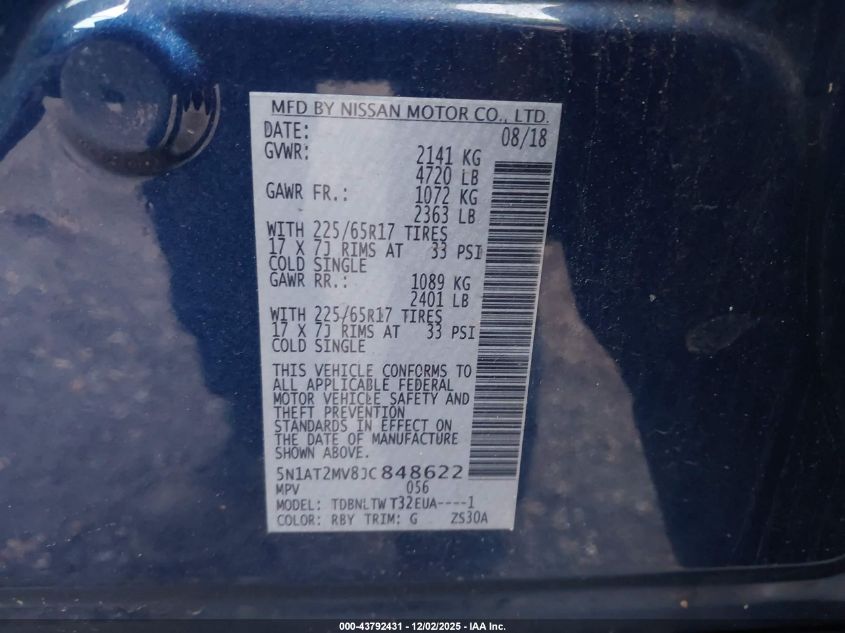 2018 NISSAN ROGUE 2018 року Бензин, 2.5, Полный привод, vin - 5N1AT2MV8JC848622 из США