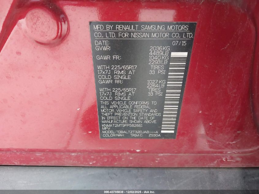 2015 NISSAN ROGUE 2015 року Бензин, 2.5, Передний привод, vin - KNMAT2MT9FP582661 из США