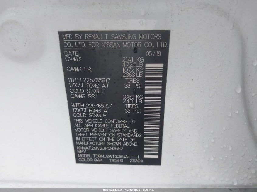 2018 NISSAN ROGUE 2018 року Бензин, 2.5, Полный привод, vin - KNMAT2MV2JP593687 из США