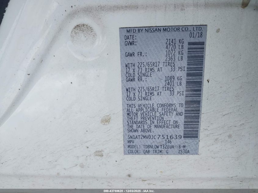 2018 NISSAN ROGUE 2018 року Бензин, 2.5, Полный привод, vin - 5N1AT2MV0JC751639 из США