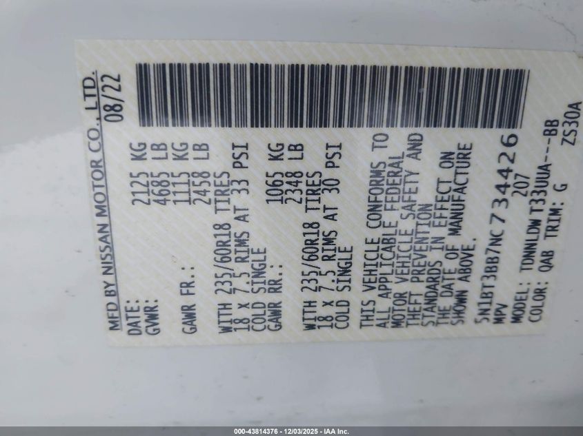 Цвет БелыйЦилиндры 3Привод Полный приводVIN 5N1BT3BB7NC734426Состояние Заводится и едет (проверено)Повреждения Передняя или задняя AutoRIA
