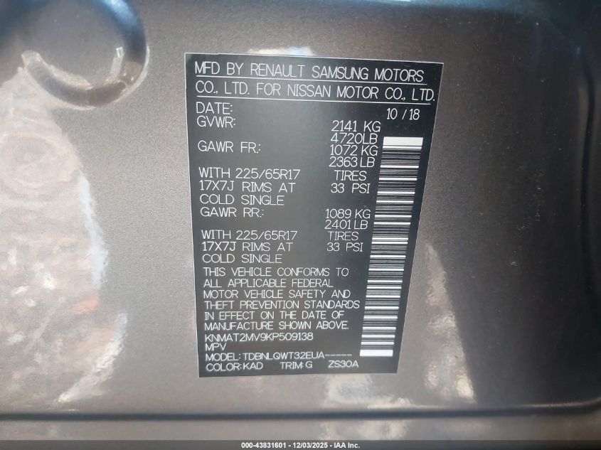 2019 NISSAN ROGUE 2019 року Бензин, 2.5, Полный привод, vin - KNMAT2MV9KP509138 из США
