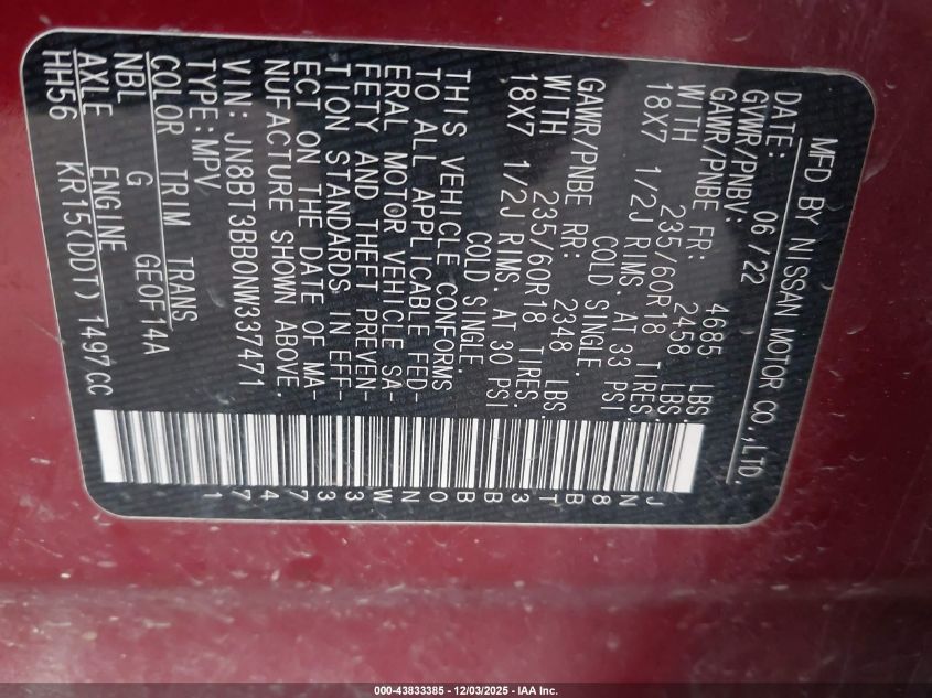 Цвет БордовыйЦилиндры 3Привод Полный приводVIN JN8BT3BB0NW337471Состояние СтационарноПовреждения Передняя или задняя AutoRIA