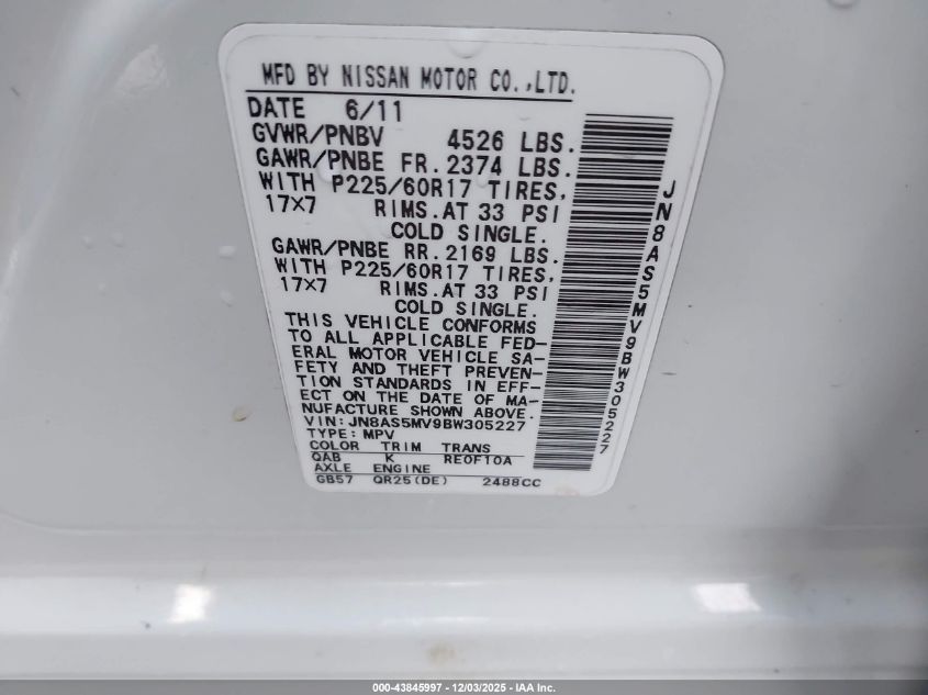 2011 NISSAN ROGUE 2011 року Бензин, 2.5, Полный привод, vin - JN8AS5MV9BW305227 из США